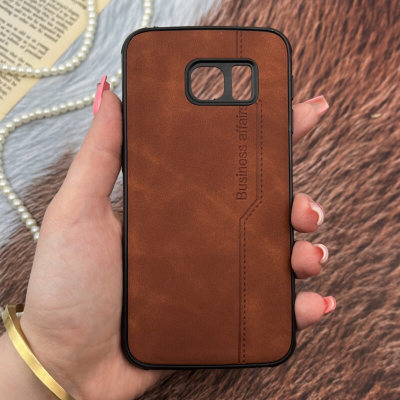 قاب گوشی Galaxy S6 Edge سامسونگ چرم طرح دوخت Business Affairs محافظ لنز دار سرمه ای